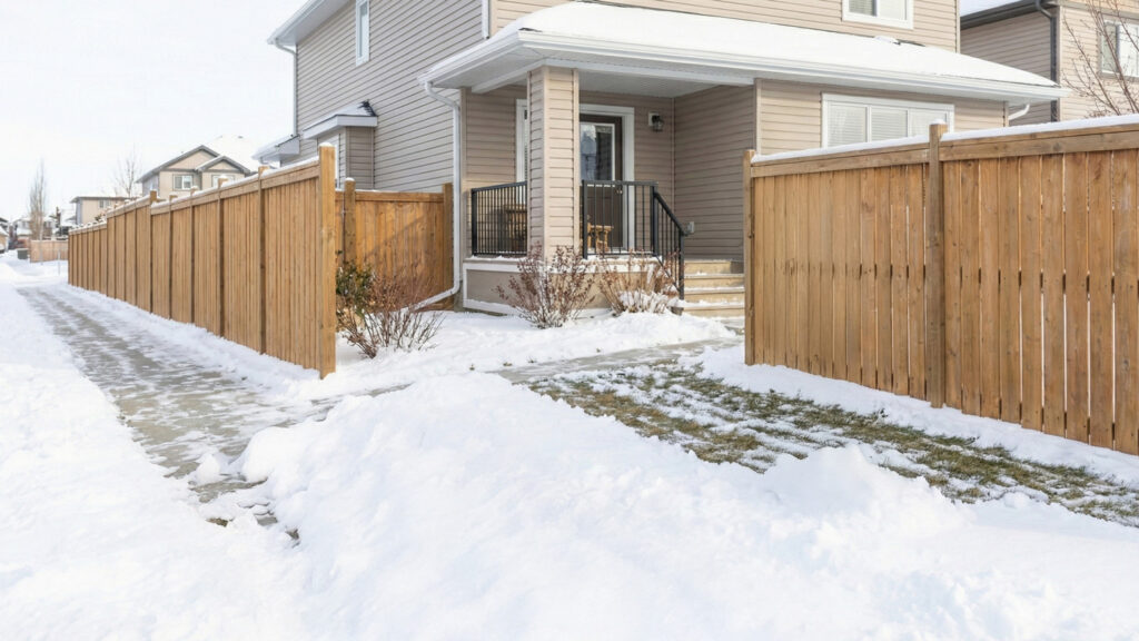 • Sytuacja A (Obowiązek istnieje): Twój płot lub granica działki styka się bezpośrednio z płytami chodnikowymi. Wtedy odśnieżanie należy do Ciebie.